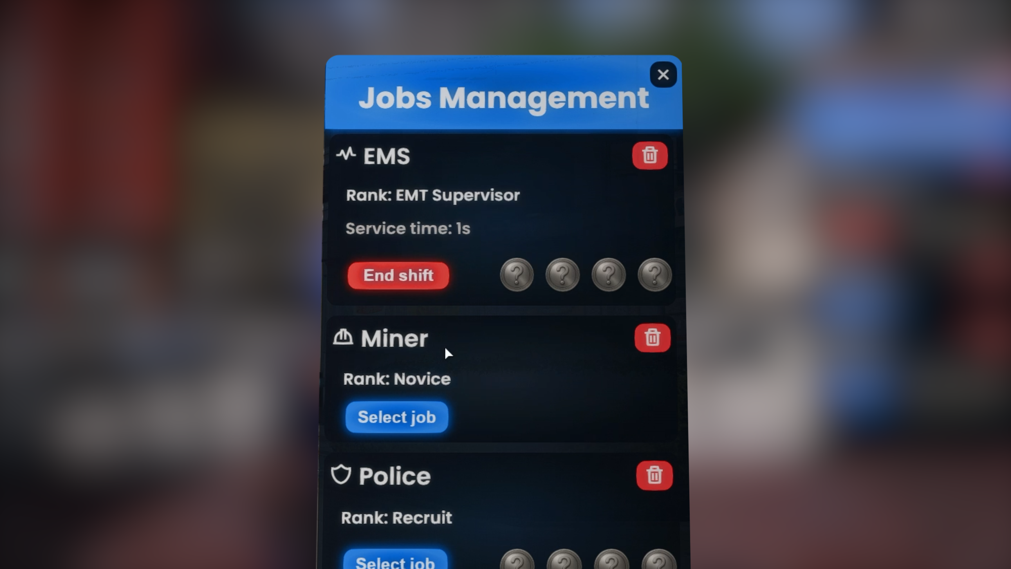 Players can open the Multijob interface with either a command or a keybind, making it fast and intuitive. No matter if you run a casual community or strict RP environment, the system integrates naturally.